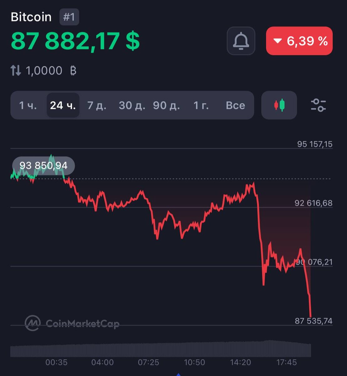 Курс биткоина, самой популярной криптовалюты в мире, резко упал до отметки в 87 000 долларов, вызвав волну беспокойства среди инвесторов и аналитиков.