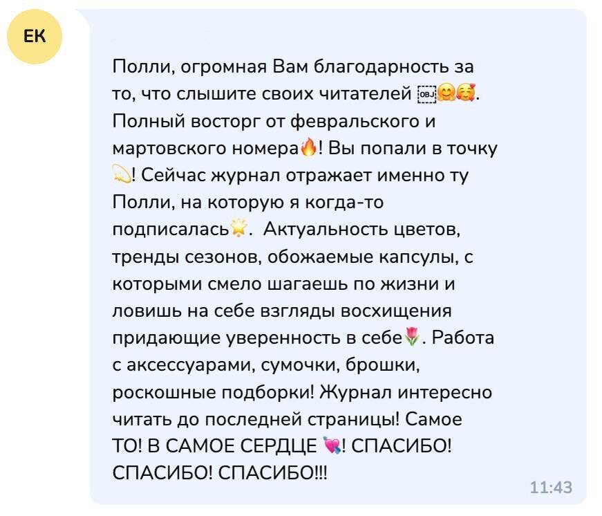 У бренда собственное производство в России, что отражается на хорошем качестве трикотажа и широком размерном ряде от 40 до 56 – для комфортной посадки на любую фигуру Все лонгсливы с Wildberries: Какое цвет ВАШ? Моя цель – давать стильную информацию, наглядными примерами и образами показывать как можно, а вы уже сами решаете, как вам это использовать в реальной жизни! Кстати, мартовский выпуск журнала получился особенным, об этом говорят читательницы – еще больше отзывов тут