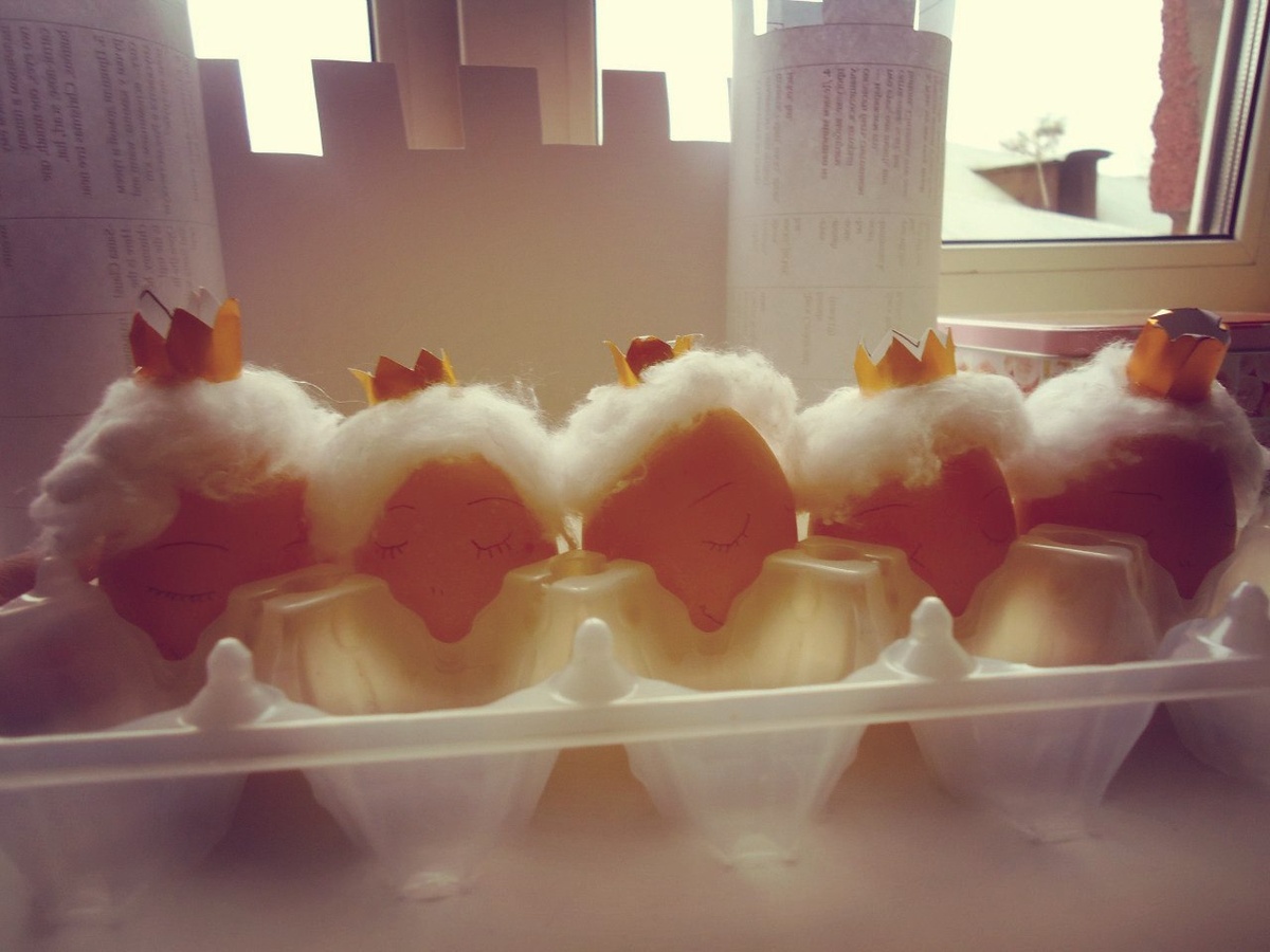 И слушал шарманку с колыбельными, но... больше всего на свете он любил спать... и это сослужило ему плохую службу на службе у короля. Солдатом он быть не мог - поэтому был дозорным в башне... но в один прекрасный день, когда он сел на крепостную стену с корзинкой, где был лимонад и булочки, он задремал на солнышке вместо того, чтобы высматривать полчища вражеских всадников, которые могли появиться из-за гребня холма... Дальнейшее вы расскажете мне сами, - говорю детям, а в конце чтения Хамти-Дамти - разбиваю яйцо в тазик.