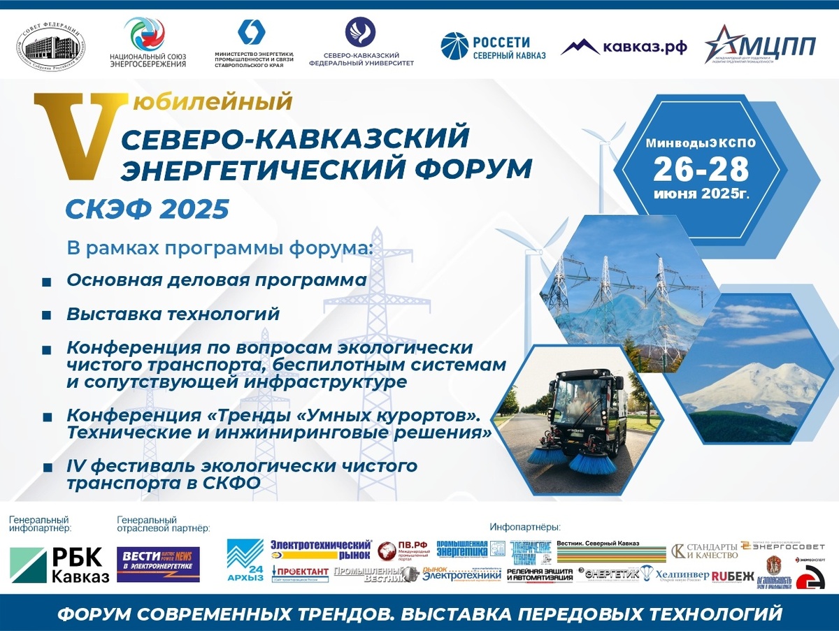 26-28 июня 2025 г, в МВЦ «МинводыЭКСПО», пройдёт пятый, юбилейный Северо - Кавказский Энергетический Форум (СКЭФ - 2025)