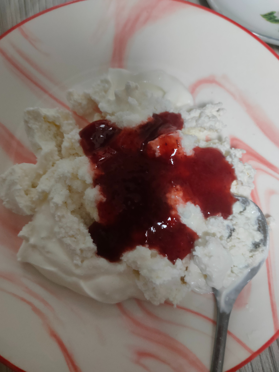 Пусть сегодня с самого утра все будет лучше, чем вчера. Доброе, доброе утро! С вами Надежда, и я приглашаю вас на мою кухню, где покажу вам наше меню на день. Вот и Масленица прошла. Сегодня первый день Великого поста, который продлится до самой Пасхи. Пасха в этом году ранняя, 20 апреля, будем надеяться, что и весна не заставит себя ждать. Я никогда пост не соблюдаю. В нашем коллективе один коллега - мужчина уже на протяжении нескольких лет соблюдает пост, а после поста набирает вес еще больше, чем был до него, да и здоровье не улучшается. Зачем тогда изнурять себя голодом. В некоторые дни он сидел только на воде и одном хлебе. Но вернемся к завтраку. Обычно в понедельник на завтрак у нас творог. Вот и сегодня был творог, ели его со сметаной и протертой с сахаром земляникой. Вкусно и полезно! А также сегодня я заварила себе черный растворимый кофе, так как я сегодня еду на работу на автобусе, лишнего времени у меня нет. К кофе была еще конфета Трюфели и печенье. На улице уже пахнет