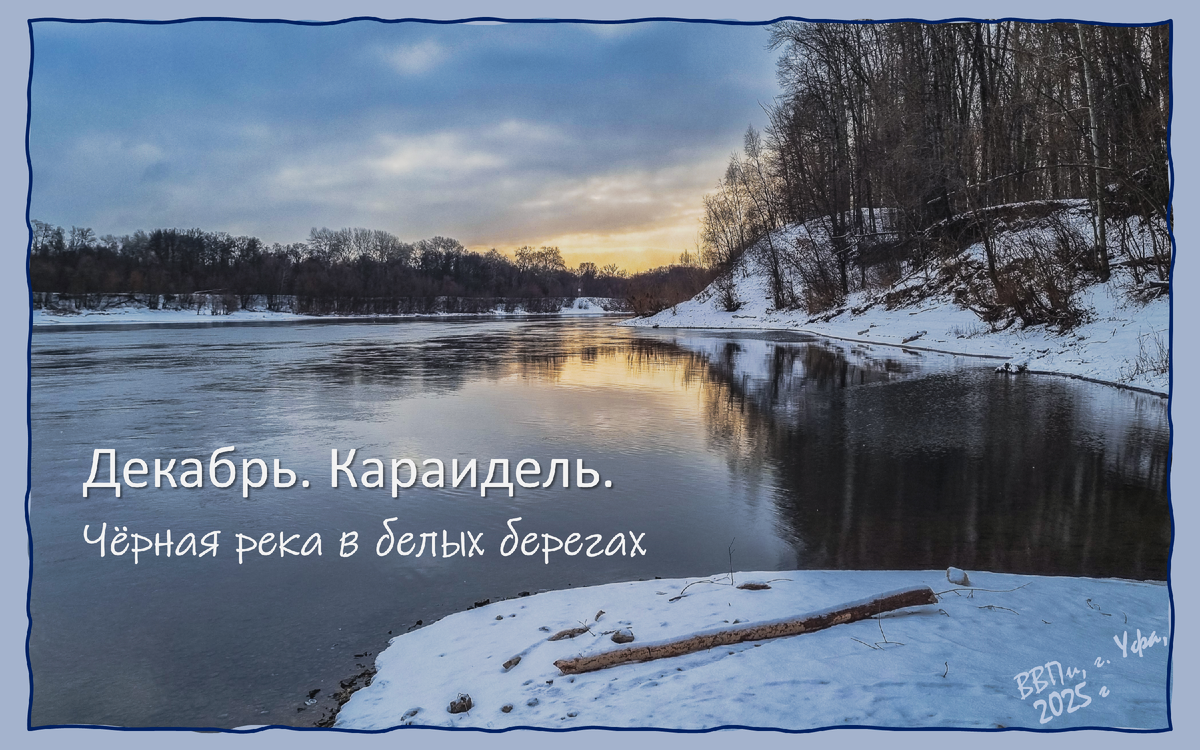 Река Уфа, любимая Уфимка - в десяти минутах от дома, достаточно забраться в кабинку Уфимской канатной дороги и спуститься на берег. Река стремительна и холодна в любую жару. Она могуча и полноводнее реки Белой в месте их слияния за Пугачёвским мостом. Исконное название реки, ещё до появления города Уфы - Караидель, в переводе с башкирского - Чёрная река. Не всякому Декабрю под силу сковать Караидель и засыпать её снегом. Так и течёт чёрная река в белых берегах...
