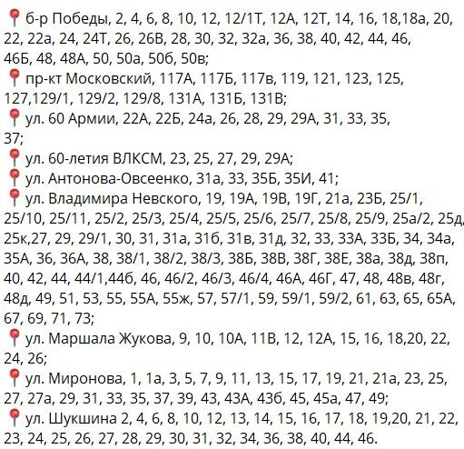 В Воронеже тысячи горожан останутся без холодной воды с 21:00 4 марта до 6:30 5 марта. Об этом рассказали в пресс-службе местного водоканала. Сообщается, что причиной отключения воды станут ремонтные работы на водопроводной линии диаметром 600 мм у дома №85 на улице Владимира Невского. В итоге без ресурса будут находиться жители улиц 60 Армии, 60-летия ВЛКСМ, Антонова-Овсеенко, Владимира Невского, Маршала Жукова, Миронова, Шукшина, а также бульвара Победы и Московского проспекта. Полностью зона отключения выглядит следующим образом: Напомним, ранее воронежцы сообщили о трехдневном потопе. Дмитрий Амелин
