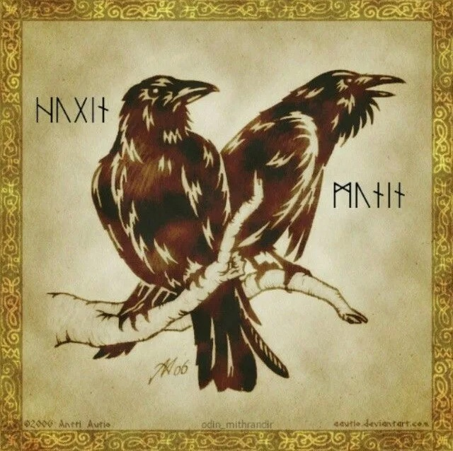 Хугин и Мунин (Hugin and Munin, др.-сканд. Huginn og Muninn) — в скандинавской мифологии два ворона, которые служат богу Одину. Их имена переводятся как “Думающий” (Huginn) и “Помнящий” (Muninn), что отражает их роль как собирателей информации для верховного бога. Роль и обязанности: Каждое утро Один выпускает Хугина и Мунина в полет над всем миром — Мидгардом. Вороны летают, собирают новости, видят все, что происходит, и к вечеру возвращаются в Асгард, чтобы рассказать Одину обо всем увиденном и услышанном. Таким образом, Один получает информацию о событиях в мире людей, о планах врагов и о нуждах своего народа. Значение для Одина: Хугин и Мунин были незаменимыми помощниками для Одина. Они служили ему глазами и ушами во всем мире, позволяя оставаться в курсе всех событий. Один очень беспокоился о своих воронах, боясь потерять их: Хугин и Мунин Над миром сим летают; Я за Хугина боюсь, Что не вернётся он; Но за Мунина тревожусь я больше. Эти строки из «Речей Гримнира» подчеркивают ценно