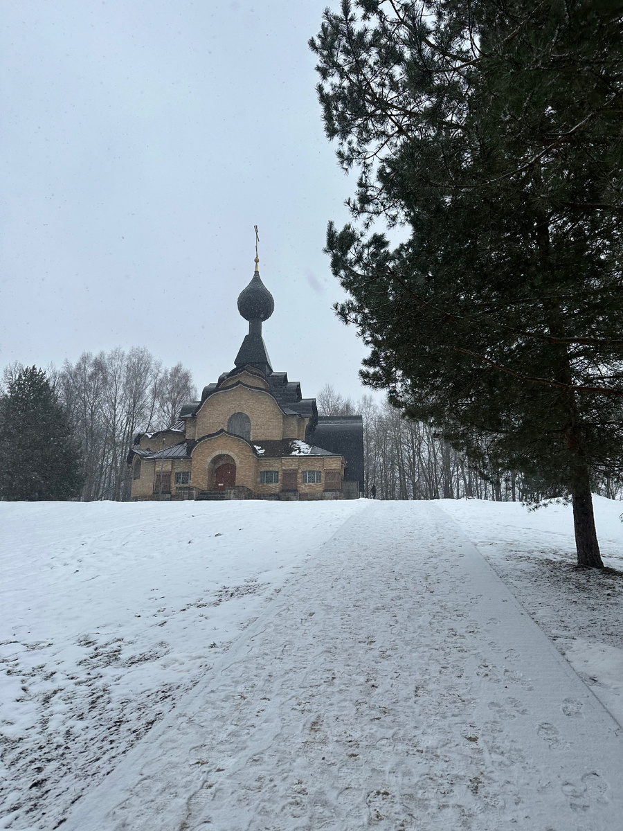 Место для храма выбирался очень долго. Интересная у него судьба, непростая. Церковь построена 1900-1915гг по совместному проекту С. В. Малютина, М. К. Тенишевой и И. Барщевского. Здесь в 1903 году похоронили хозяина усадьбы Вячеслава Николаевича Тенишева. Но была разорена в революционный период. 🤦🏼♀️ А сам храм использовался под склад. Автор внутренних росписей (не сохранившихся) и мозаики над входом в церковь «Спас Нерукотворный» — Николай Рерих. Представляете? Сам Николай Рерих, с которым дружила хозяйка усадьбы - Мария Тенишева. Храм не совпадает с канонами православной церкви, есть в нём что-то от католицизма, и даже от буддизма. Искусствоведы полагают, что к 1914г. авторы проекта, после многочисленных споров со Смоленской епархией, всё-таки получили предварительное согласие на освящение. Но не успели! А в 1919г. княгиня М.Тенишева и вовсе навсегда уехала из России в Париж. В храме создана выставка, которая рассказывает об авторах проекта. О том, как серьезно разрабатывали и