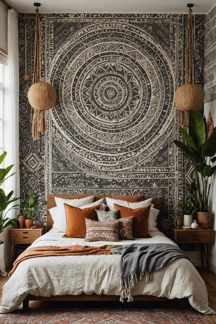 📌 Совет: если хочется яркого акцента, повесьте над кроватью тканевое панно с этническим узором. Это мгновенно преобразит интерьер.