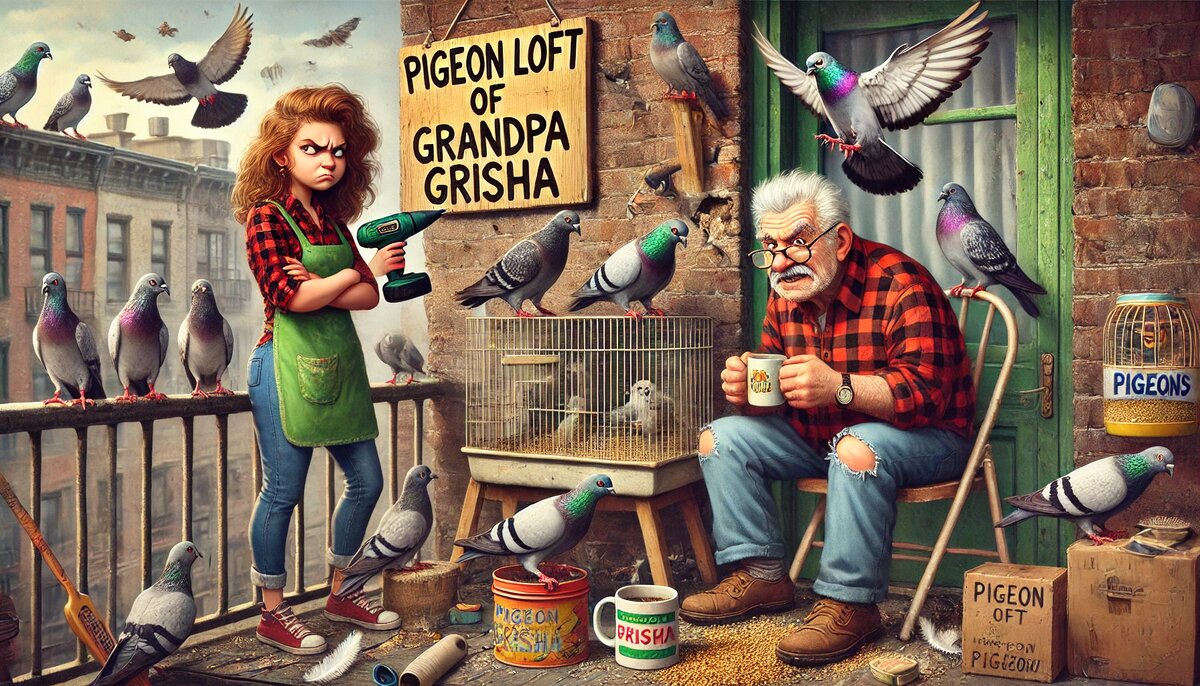 Пахло сеном и птичьим кормом. А ещё — тихим отчаянием. Я стояла на балконе, сжимая в руках чашку кофе, и смотрела, как свёкор Петрович крепит к перилам табличку: «Голубятня имени деда Гриши». Мой муж Виталик в это время увлечённо сверлил дырку в стене «для вентиляции», хотя до этого не мог даже полку прибить. «Папа говорит, это семейная традиция», — буркнул он, избегая моего взгляда. Традиция? Наш балкон пах теперь не цветами, а птичьим будущим. Всё началось с коробки. Старая, обмотанная скотчем, она стояла в прихожей, а изнутри доносилось тихое воркование. «Породистые, — хвастался Петрович, выпуская на балкон двух белых голубей с розовыми лентами на лапках. — Батька мой таких в войну разводил!».