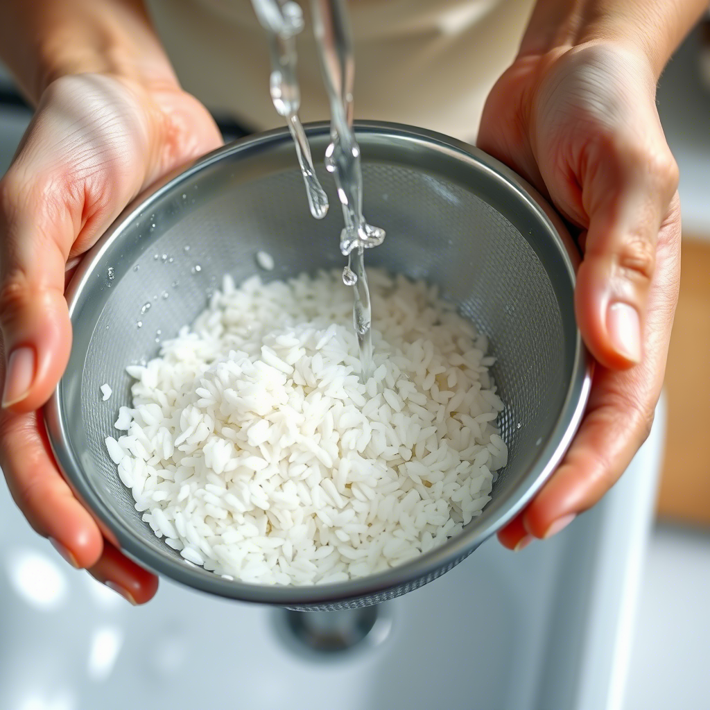 - Промойте рис в холодной воде до прозрачности. Это поможет избавиться от лишнего крахмала и сделает рис рассыпчатым.