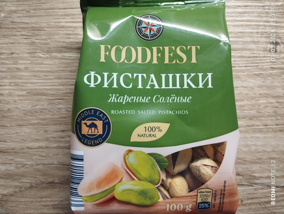 Орешки в красивой упаковке, с окошечком - видно сам продукт! Откроем и попробуем на вкус. Цена 149 руб. за 100 гр. Вспомним полезность и противопоказания данного продукта Фисташки — это орехи, которые растут на одноимённых деревьях в субтропических и тропических областях Земли Изготовитель ООО "Деловое партнерство" МО г.о. Подольска. Срок годности 12 месяцев. На момент покупки продукту 1 месяц от даты изготовления. Вес продукта соответствует заявленному 100 гр. Орешки почти все приоткрыты, запах без посторонних примесей, пахнет орешками. вкусные, без посторонних привкусов, все открытые, не очень соленые. Буду брать еще, по необходимости. Продукт готов к употреблению. Цена за кг. 1490 руб. Однако стоит помнить, что фисташки, как и многие другие орехи, являются сильным аллергеном. При склонности к аллергии и при наличии хронических заболеваний рекомендуется проконсультироваться с врачом. Подписывайтесь, далее будет еще много интересного! Отзывы о данных продуктах сугубо мое личное мне