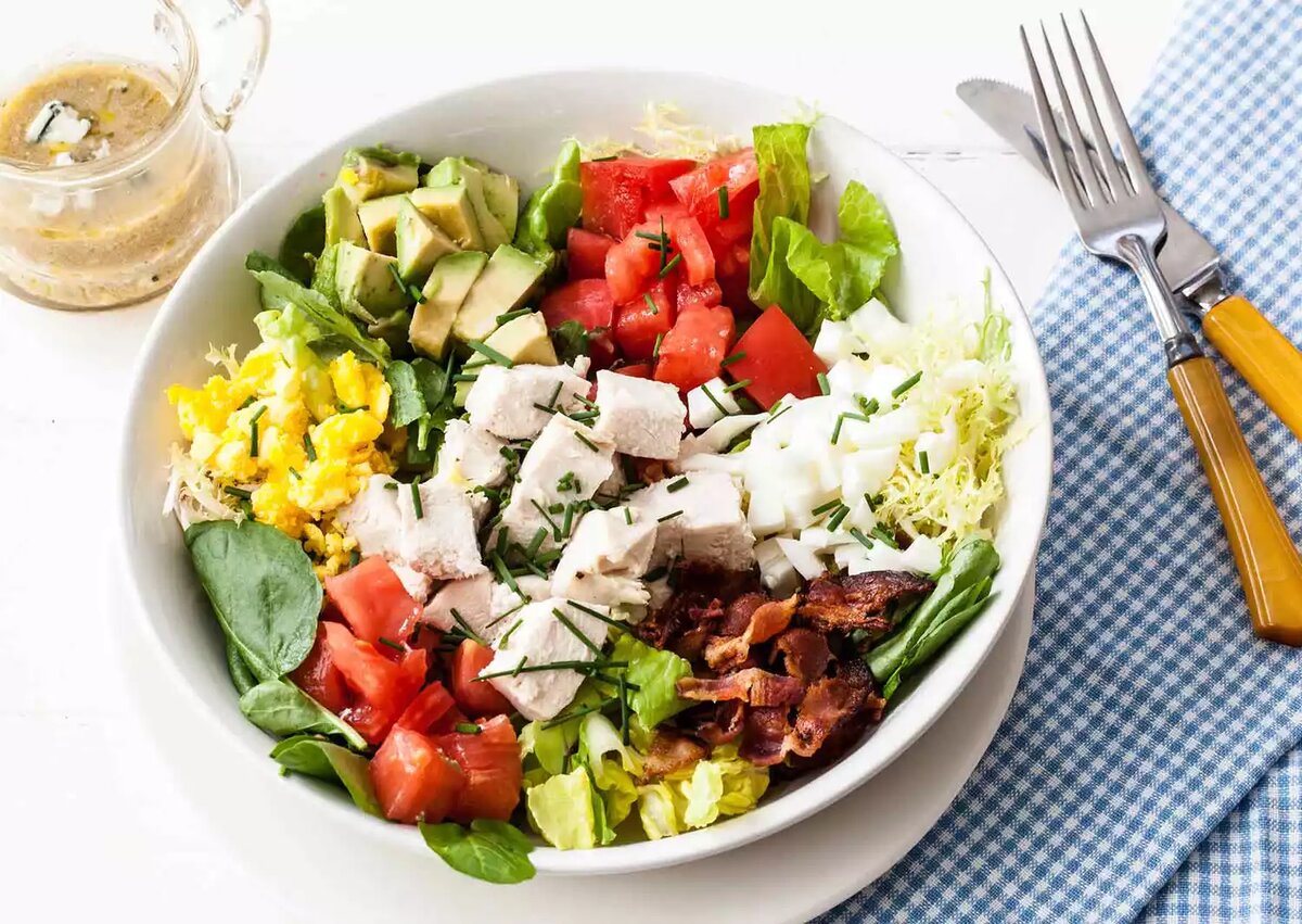 Салат Кобб с беконом, авокадо, курицей, помидорами, латуком, кресс-салатом и вареным яйцом — это классика. Салат Кобб — это квинтэссенция американского салата, впервые приготовленного по прихоти Роберта Кобба из бывшего лос-анджелесского ресторана Brown Derby, когда ему нужно было накормить Сида Граумана поздно вечером (1937 год). Он стал настолько популярным, что кинозвезды стали просить «салат Кобба», и вскоре его популярность распространилась. Оригинальный ресторан Brown Derby на бульваре Уилшир был снесен в 80-х годах, как и многие другие достопримечательности центра Лос-Анджелеса — Перинос, отель «Амбассадор», — а на их месте появились торговые центры. Ну что ж, той огромной коричневой шляпы давно нет, но, слава богу, салат остался, наследие золотой эры Голливуда! Приятного аппетита!