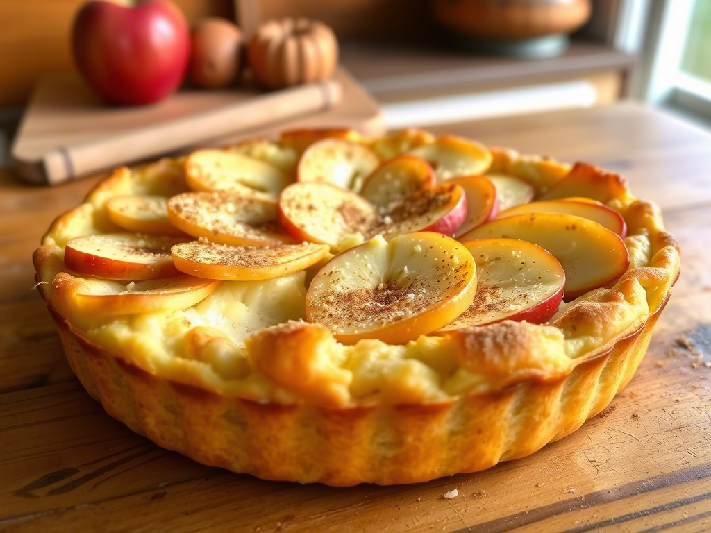 Выложите творожную массу в форму, сверху разложите яблоки.