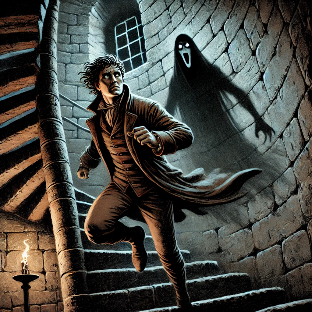 Мы шагаем всё выше, доходим до факела, здесь лестница спускается вниз и снова поворачивает, чтобы через тридцать четыре ступени опять устремиться наверх. Я шагаю всё быстрее, девчонка почти бежит за мной. Скоро за нашими спинами слышатся шаги кого-то третьего и его тяжёлое хриплое дыхание. Звуки догоняют нас, а мы уже бежим наверх, бежим из последних сил туда, где горит очередной факел. Задыхаясь, я останавливаюсь под факелом, и Ангел с разбега утыкается лицом мне в спину. Нужно обернуться. Набраться смелости и обернуться. И я оборачиваюсь. Девчонка тоже смотрит назад, туда, откуда доносится до нас хрип задыхающегося человека.