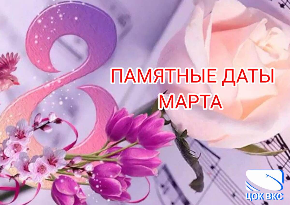 01.03.2025 г. 1 марта – Всемирный день гражданской обороны 1 марта – годовой праздник Военной академии воздушно-космической обороны имени Маршала Советского Союза Г.К. Жукова 7 марта – годовой праздник Главного организационно-мобилизационного управления Генерального штаба Вооруженных Сил Российской Федерации. Образовано в 1964 году 8 марта – Международный женский день 11 марта – годовой праздник управления интеллектуальной собственности, военно-технического сотрудничества и экспертизы поставок вооружения и военной техники Министерства обороны Российской Федерации 18 марта – День воссоединения Крыма с Россией, 2014 год 19 марта – День моряка-подводника 24 марта – День штурманской службы ВВС 27 марта – День войск национальной гвардии Российской Федерации (Росгвардии) 29 марта – День специалиста юридической службы в Вооруженных Силах Российской Федерации Будь в курсе! Подписывайся на Telegram-канал ЦОК ВКС