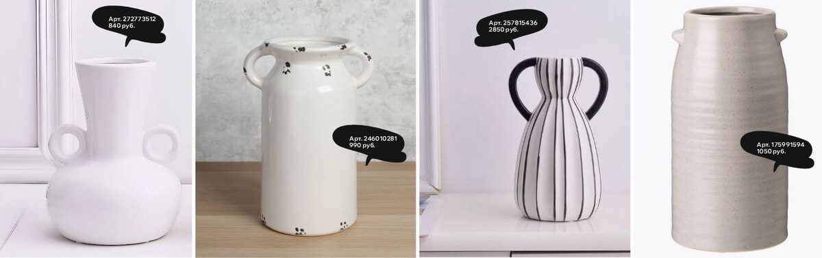Всем красивого дня! В преддверии 8 Марта делюсь подборкой ваз из моего «Избранного» с Wildberries. Цены актуальны на момент публикации статьи. Первая группа «ушастики», но может и «рукастики» - современная интерпретация вазы-амфоры. Уже сама форма этих вазочек вызывает улыбку и поднимает настроение. Хочется подергать их за «ушко», ну или пожать «руку». На фото слева-направо арт. 272773512, арт. 246010281, арт. 257815436, арт. 175991594. Вторая группа вазочек отличается ярко выраженными формами. Все модели представлены в нескольких цветах. Обратите внимание, что вазы из гипса не предназначены для заполнения водой, в них можно ставить сухоцветы или использовать как самостоятельный элемент декора. На фото арт. 147697895, арт. 268615306, арт. 113199588, арт. 195706964. В группе ваз из прозрачного цветного стекла первая, вторая и четвертая вазы на фото есть в других размерах. Третья модель имеет съемное деревянное основание, которое может дополнительно использоваться как мини-вазочка, стака