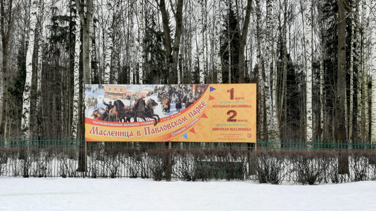 В воскресенье всё-таки съездили в Павловск на праздник. Хотя не хотелось толкаться, по такому случаю там всегда собирается много народа. Да и погода угрожала дождём. Но, всё обошлось, погуляли отлично, зиму проводили как положено. Хорошо, что у нас абонементы в парк, не пришлось стоять в очереди за билетами. Мы приехали к часу дня, а люди уже вовсю резвились. Главное, конечно, поесть. Для этого и идут на праздник. Не сказал бы, что блины были основным блюдом. Шашлык всё же шёл на первом месте. Сесть, правда, было некуда, столов не хватало. Граждане уходили с едой на скамейки вокруг. Напитки у большинства были с собой, поэтому медовуха не пользовалась спросом. Кроме того, закусить предлагали мёдом и грибами, в том числе и сушёными. Эстеты могли сами себе испечь что-нибудь. Или покататься на лошадке по грязи. Вокруг площади Гуляний - 300 рублей, вокруг стадиона - 600. Везде толпы и очереди, но зато весело. В шаговой доступности от площади два туалета. В женский очередь минут на сорок. М