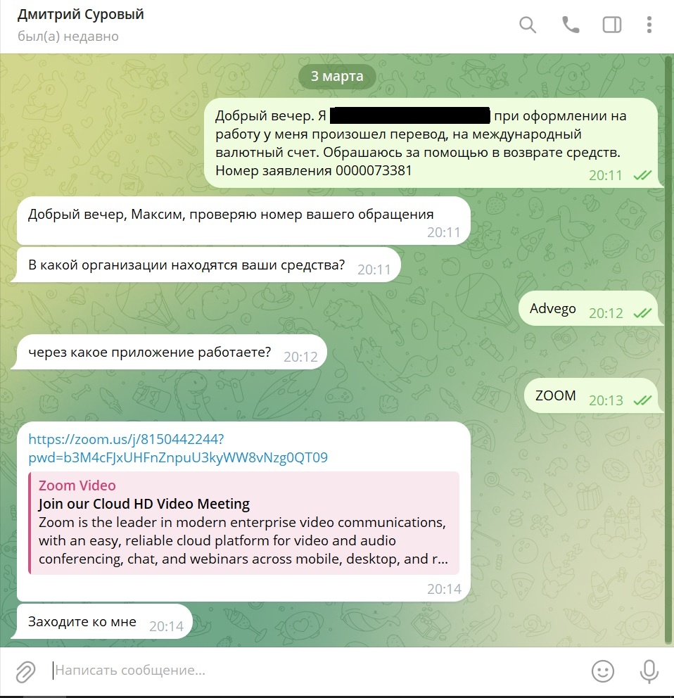Вот дальше и началась трагикомедия которую надо было сразу же завершать и на этом всё, бросать разговор и трубку. Нет какая-то невидимая сила меня потянула продолжить разговор. А разговор дальнейший уже продолжился не по телефону, а в Zoom.