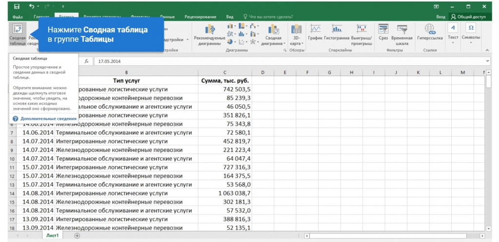 Создание сводной таблицы в Excel