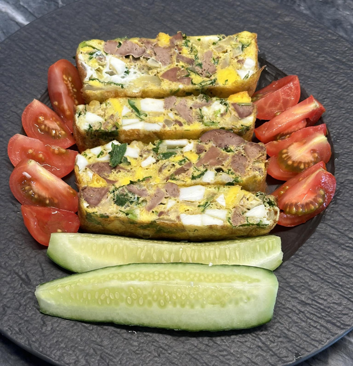 ✔ Печень куриная варёная – 600 г; ✔ Яйца сваренные – 3 шт.; ✔ Яйца сырые – 3 шт.; ✔ Молоко – 100 мл; ✔ Сыр – 150 г; ✔ Зелень (лук, петрушка) – 50 г; ✔Соль, специи – по вкусу; ✔Масло растительное (для смазывания формы) – 1 ст. л. Куриную печень (или печень другой птицы – индейки, утки) вымыть и отварить в кипящей воде 5-7 минут. Сварить 3 яйца вкрутую. Нарезать произвольно сваренную печень, варёные яйца, натереть сыр, нарубить зелень. Добавить сырые яйца, молоко, специи и соль. Всё перемешать и выложить в форму для запекания. И отправить в разогретую до 170-180 градусов духовку на 20-25 минут. КБЖУ на 100 г - 159/15,0/10,8/1,4. Рецепт на странице Автор рецепта – Galina Lefter Расчёт КБЖУ сделан с помощью Telegram-чат-бота https://t.me/vesipitaniebot © Почтенный возраст Online и Рецепты для диабетиков