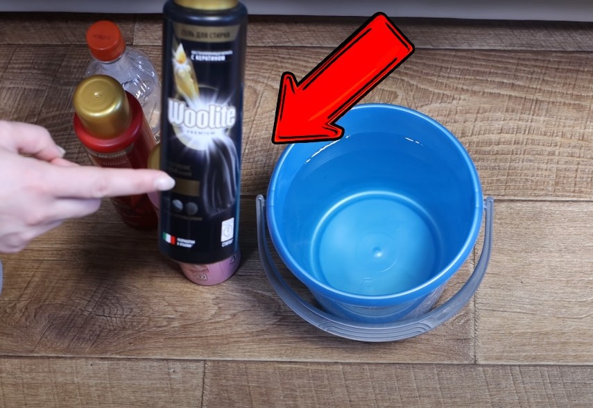 ✔ Щетка + губка + тряпка Как действовать: 1️⃣ В ведро с водой добавьте гель.