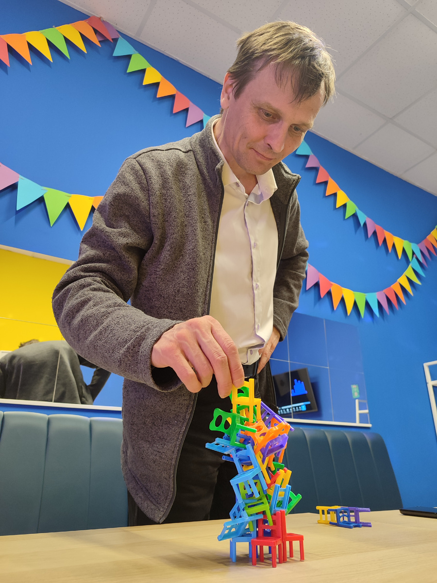 Бой предстоял неравный. Битва обещала быть жаркой. Ещё бы! Столкнулись интересы Инь и Янь. И лучшие представители обоих полов бились не на жизнь, а на власть и могущество. Каждый стремился быть лучше соперника. На Его стороне точный расчет, математические формулы и применение законов физики. С Её стороны интуиция и ощущения, а ещё удивительное и непостижимое «Я так чувствую» или хлеще того - «Мне кажется». Весь Мир замер, наблюдая за поединком. Решалась судьба человечества. Великая, подтверждающая законы и следующая установленным правилам, мужская логика против, не поддающегося объяснениям и вписыванию хоть в какую-то систему координат, 6-го чувства. Основа построена, фундамент заложен. Участники поделили поровну орудия сражения. Старт! Первый ход слабому полу, точнее красивому. И Блондинка уверенно водружает первый стульчик поверх основы. Почти не глядя, соперник ставит свой вверх ногами и довольно улыбается. Девушка не сдается и ножкой вкручивает очередную деталь качающейся башни. П