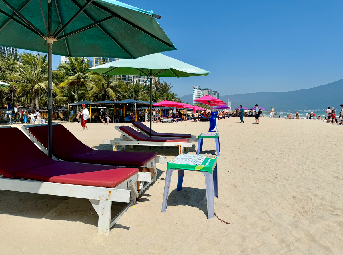 Дананг подарил нам целую неделю солнца! Мы так долго ждали эти ясные дни, что постарались использовать их на полную катушку. После Хойана нужно было обязательно взять отдых от впечатлений, поэтому день нас получился пляжным и релаксным :) Мы живем рядом с пляжем Ми Кхе, который считается лучшим в Дананге. Пляжная линия мне очень нравится! Песочек белый, чистый. Пляж широкий, много лежаков и мест, де можно просто на песке расстелить полотенце. Никаких бродячих собак, мушек, кусачих блошек и комаров. Красота! Арендовать на целый день лежак с зонтиком стоит 50 000 донгов (200 рублей). Море еще холодное, но волн уже нет. Я не купалась, а самым тюленьим образом грела живот под солнцем весь день :) Парковка для байков бесплатная. Кстати говоря, стоит упомянуть про безопасность в городе. В отличии от Нячанга, другого популярного курортного города Вьетнама, в Дананге можно безопасно оставлять шлемы на байках и не переживать, что их утащат (полнолицевые шлемы "фулл-фейс" все же рекомендую прята
