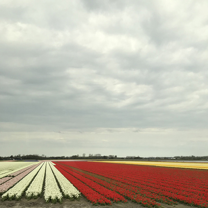 По обе стороны дороги мелькали поля с разноцветными тюльпанами. Это прекрасное и незабываемое зрелище.