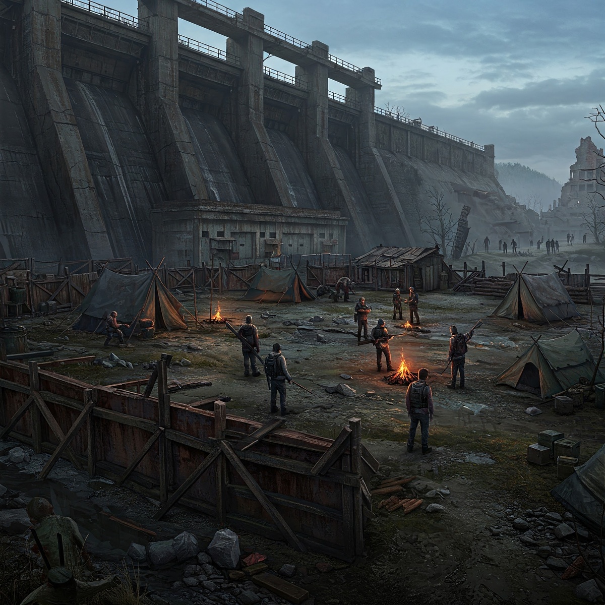 Когда группа Дэрила добралась до Арчер Крик, они оказались в одном из самых необычных мест для выживания, которое только можно было найти. Архитектура этого места была странной и в какой-то степени футуристичной, особенно для тех, кто привык к обыкновенным городам. Заброшенная гидроэлектростанция, расположенная на старой плотине, превратилась в настоящую крепость для выживших. Этот регион стал домом для множества семей, объединенных в одном стремлении — выжить. "Под их крылом" находилось более сорока семей, в том числе и группы беженцев, которые обосновались в этом укрепленном месте. Однако, несмотря на усилия выживших, это укрытие не было непробиваемым, и за многие недели оно подверглось нескольким нападениям ходячих, однако пока все еще удавалось держать оборону. Группа Дэрила увидела, что этот лагерь имел все, что нужно для выживания — кров, еду, медикаменты и защищенные позиции. Но на самом дел