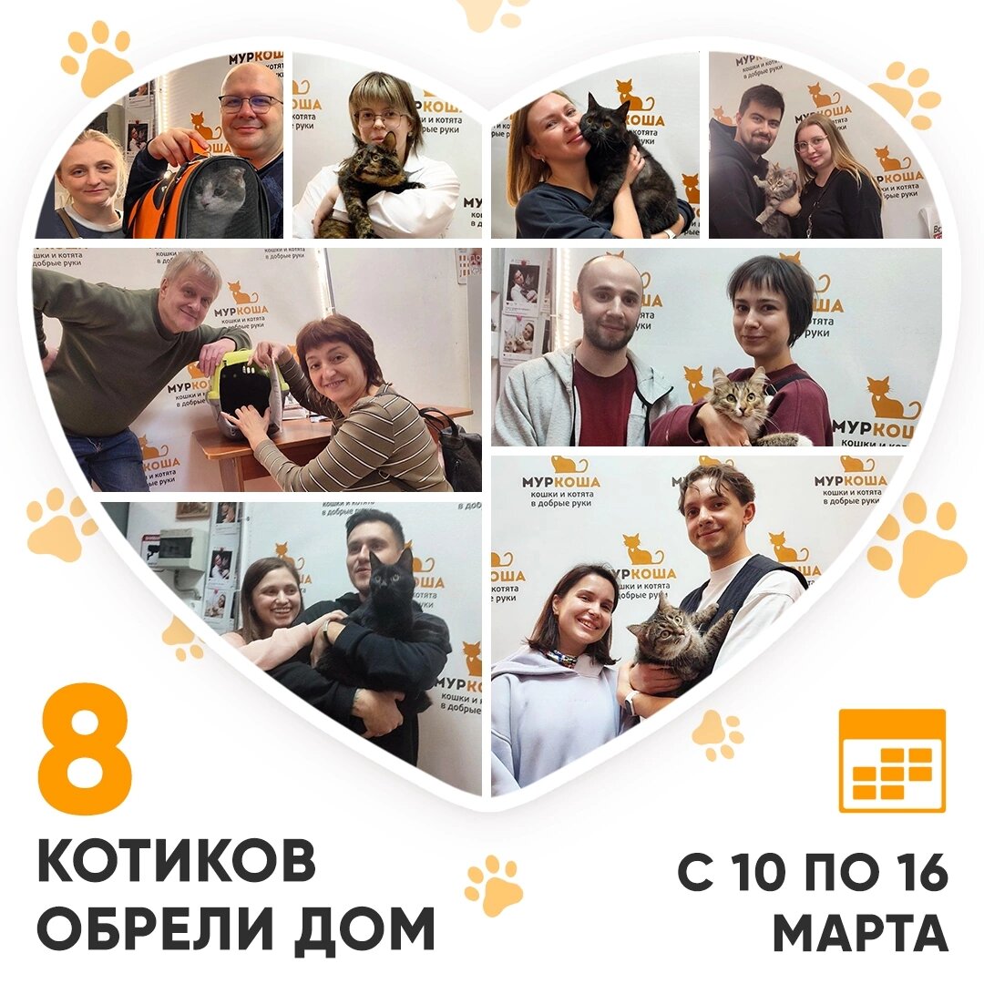 Друзья! Сегодня среда, и мы, как обычно, подводим итоги работы «Муркоши» за прошедшую неделю. Кто же стал счастливым выпускником Центра помощи кошкам «Муркоша» с 10 марта по 17 марта 2025 года? 😺 🥳 Итак, за прошедшую неделю домашними и любимыми стали 8 котиков! Пушистик Мист был найден на дачах. Затем его доставили в «Муркошу». Зеленоглазый котик довольно быстро повстречал замечательную семью. А недавно уже прислал привет из дома! У бывшей хозяйки Тартара больше не было возможности заботиться о коте, поэтому ему потребовалось найти новую семью. Милый Тартар ждал своих людей, и вот, в один прекрасный день он снова стал домашним! Эдельвейс прибыл в к нам в компании мамы Берегини, а также братьев и сестёр: Пиериса, Вейгелы, Фатсии и Нерины. Эти котята и их мама недавно стали домашними. А сегодня удачу улыбнулась и малышу Эдельвейсу! Теперь вся семья имеет заботливых хозяев. Красавчик Ламберт жил на домашней передержке. Но котика доставили в «Муркошу», чтобы он нашёл своих настоящих х