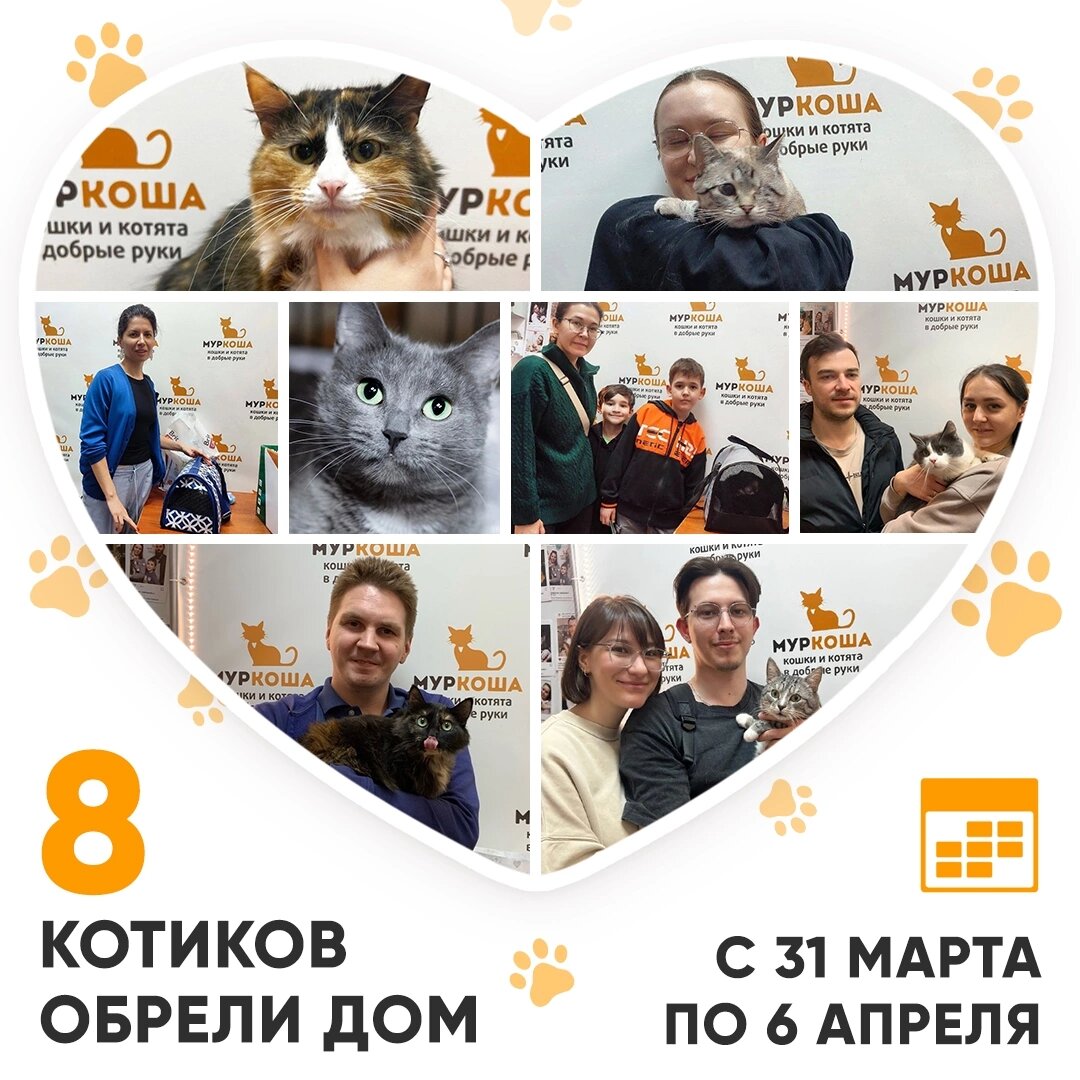 Друзья! Сегодня среда, и мы, как обычно, подводим итоги работы «Муркоши» за прошедшую неделю. Кто же стал счастливым выпускником Центра помощи кошкам «Муркоша» с 31 марта по 06 апреля 2025 года? 😺 🥳 Итак, за прошедшую неделю домашними и любимыми стали 8 котиков! Пушистая Павлина жила в районе метро Павелецкая. Кошечку забрали с улицы и привезли к нам. В «Муркоше» Павлина стала искать заботливого хозяина. И вот, она нашла того самого человека! Валькирия приехала в «Муркошу» с передержки. У робкой кошечки диагностирован ВЛК, но это никак не помешало ей стать домашней любимицей – за Валькирией приехала хозяйка! Очень ласковый Сырник жил на передержке. Затем, уже будучи в приюте, он очаровал замечательную семью, и мы с радостью проводили Сырника в домашнюю жизнь! У Сырника есть брат Бельчи, который ещё ждёт своих людей: Касл был найден на улице. Этот серый очаровашка адаптировался в приюте и смог покорить своей красотой добрую семью. Теперь у него есть свой уютный дом! Кошечка Мушка,