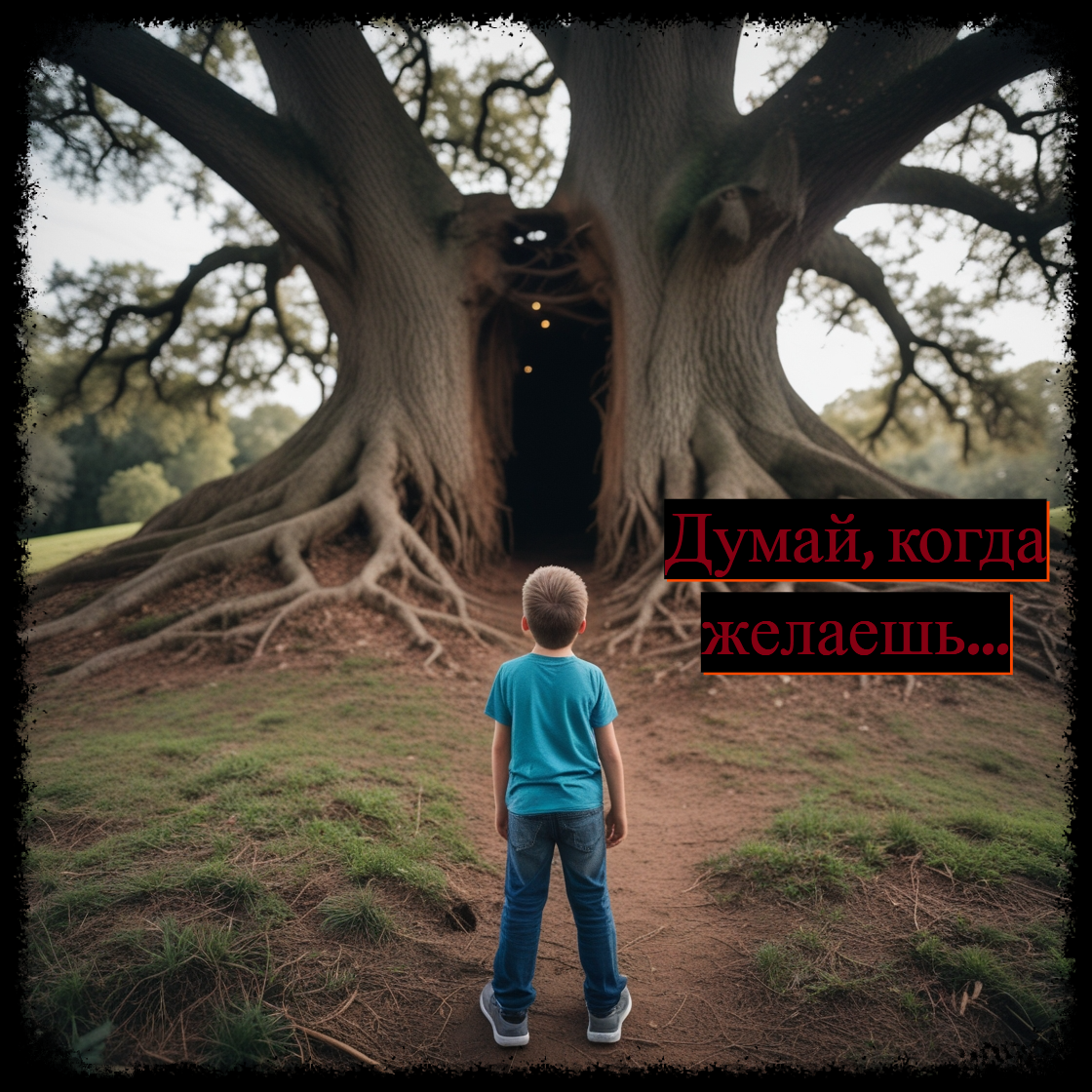 Лето в Псковской области пахло смолой и теплым ветром. Егор, угловатый подросток с вечно взъерошенными волосами, скучал на бабушкином подворье. Друзей здесь не было — только куры да кот Васька, спавший на крыльце. Но Егор не унывал: из коры он мастерил воинов с мечами из щепок, из речного камня — молчаливого великана Гошу, а из старого веника — пирата Бармалея, который вечно норовил «украсть» бабушкины пирожки. В ту ночь он лежал на просевшей тахте во дворе, впитывая тишину. Звезды вспыхивали, будто серебряные гвозди, вбитые в бархат неба. Одна сорвалась, прочертив раскаленную нить. «Хочу тайного друга… Волшебного!» — шепнул Егор, не заметив, как луна затянулась ржавым маревом, словно глаз древнего бога прищурился над миром. Сон пришел тревожный: дуб-исполин с корнями, похожими на скрюченные пальцы, и черная нора в его боку. Оттуда доносилось шуршание, будто кто-то перебирал кости… Утром бабушка, помешивая варенье, буркнула: «Дуб? За речкой, у болотца. Говорят, там дух живет — то ли х