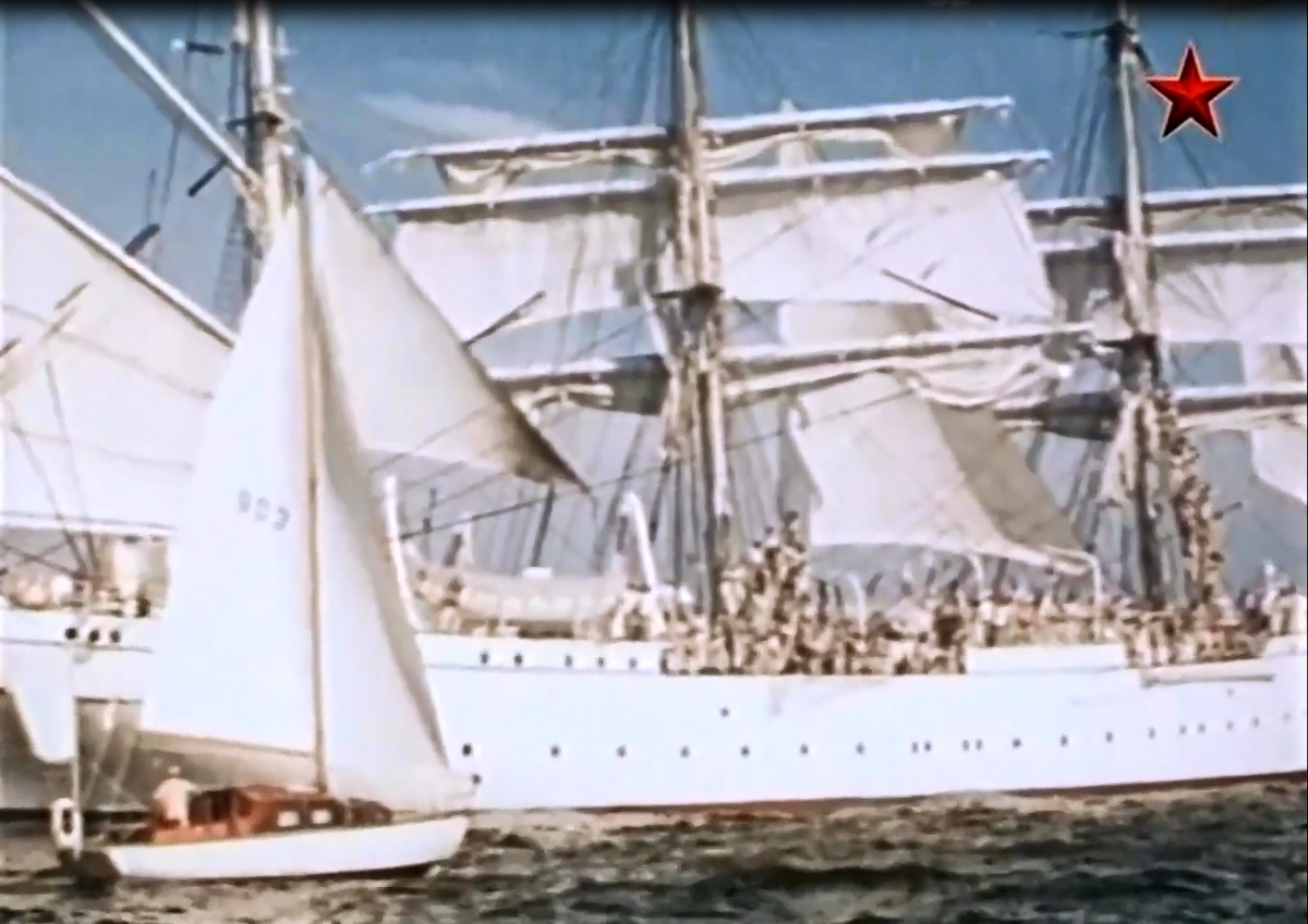 Все, свободные от вахты, высыпали на палубу смотреть на диковинку - маленькую яхту посреди океана. "Вижу пиратское судно!", - острит Гия.