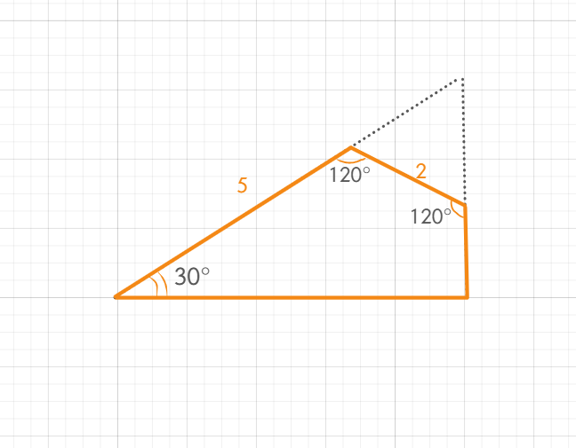 19. ★★★ В четырёхугольнике ABCD угол A равен 30°, а углы B и C равны 120°. Найдите сторону CD, если AB=5, BC=2