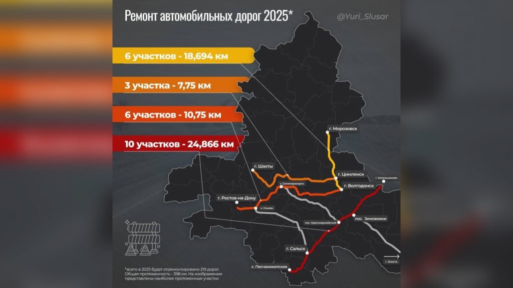 Дорожная отрасль остается одной из наиболее актуальных тем для жителей Дона. Глава региона Юрий Слюсарь неоднократно подчеркивал, что получает множество обращений от граждан, связанных с этой проблемой. Он отмечает, что износ основных дорог, соединяющих города, уже достиг 19%, а на других участках этот показатель еще выше. Это свидетельствует о необходимости масштабных работ по приведению дорожной сети в соответствие с нормативными требованиями. Однако для этого потребуются значительные финансовые вложения и время. Важным шагом в решении этой задачи станет реализация национального проекта «Инфраструктура для жизни». В текущем году в рамках этого проекта планируется отремонтировать 219 дорог общей протяженностью 398 км. Среди них как крупные региональные трассы, так и местные дороги. Например, будет обновлена межмуниципальная дорога, соединяющая Таганрог и село Федоровка. На эти цели выделено 9,9 млрд рублей, из которых 5,8 млрд рублей поступят из федерального бюджета. Кроме того, до ко