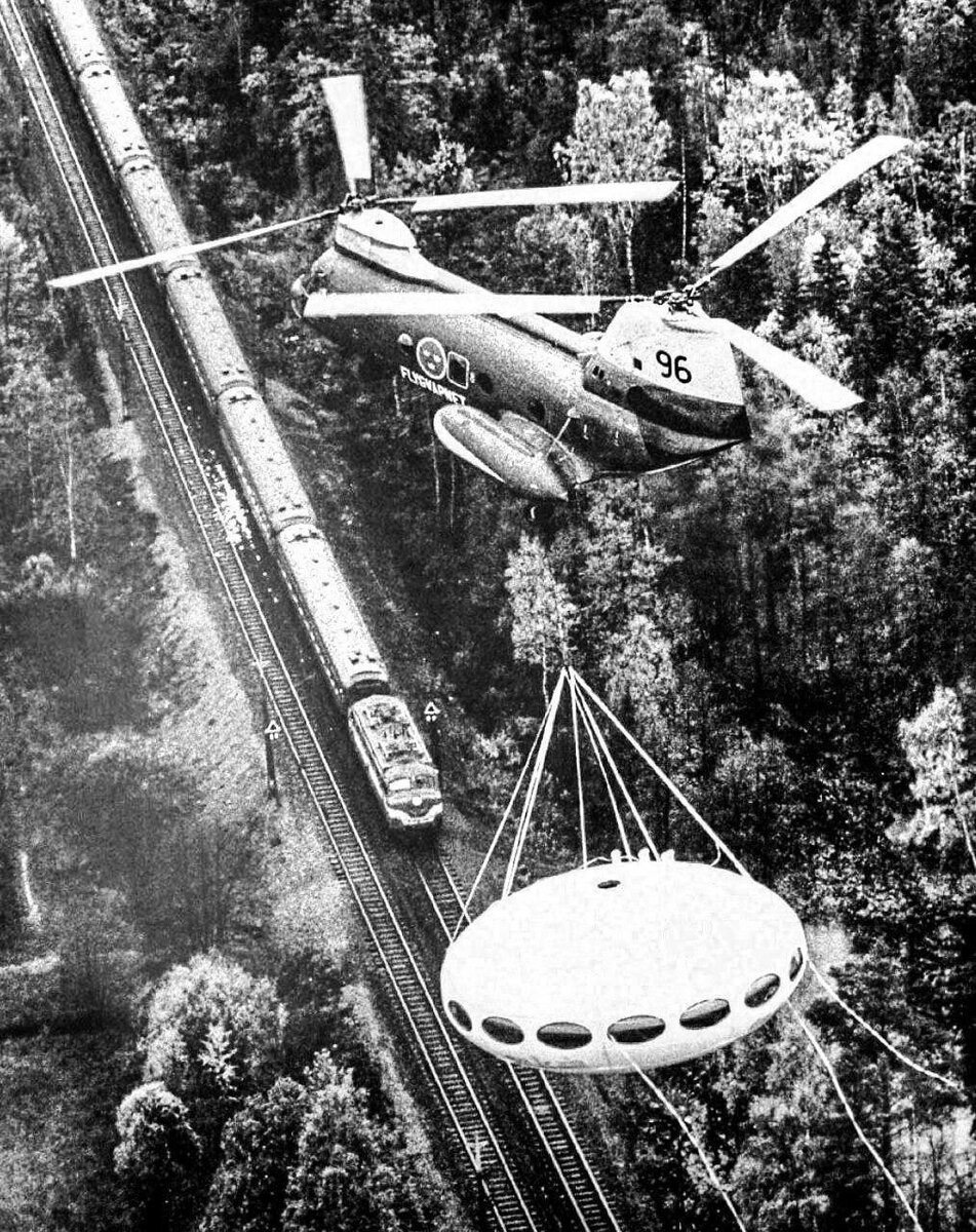 Удивительный снимок... Транспортировка одного из самых уникальных строений в поселке Домбай - гостиницы "Тарелка". 1969 год! Оказывается, эту летающую тарелку нам подарили финны. А дело было так... Летом 1969 года восьмой президент Финляндии Урхо Кекконен и председатель Совета министров СССР Алексей Косыгин совершили переход через Кавказский хребет.