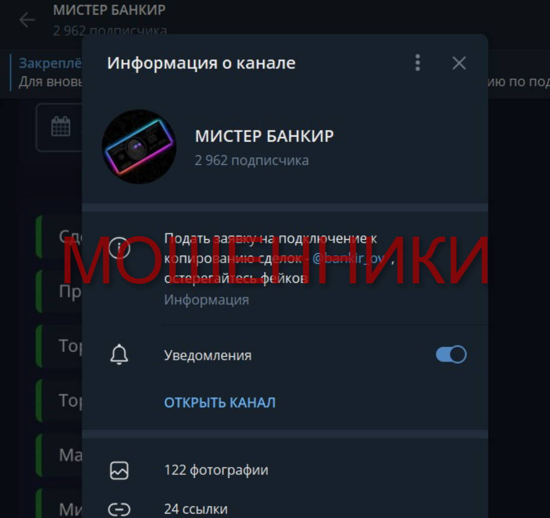 В Telegram регулярно появляются каналы, предлагающие "автоматический трейдинг" и легкий заработок без усилий. Одним из таких проектов является "Мистер Банкир", автором которого выступает Andrew Levi (@bankir_ov). Он заявляет, что его система приносит до 50% прибыли в месяц, а подписчики могут просто копировать его сделки и зарабатывать вместе с ним. Однако при детальном анализе становится очевидно, что перед нами классическая схема развода. Разберёмся, почему "Мистер Банкир" – это мошенничество и почему доверять этому проекту опасно. Автор проекта утверждает, что: