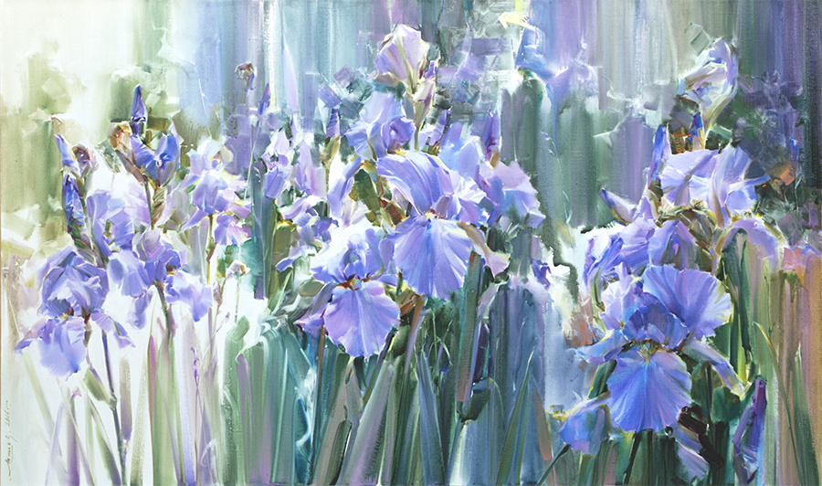 Картина: Трепетные ирисы Год создания: 2016 Техника исполнения: холст / акварель / акриловый лак Размер: 60*100