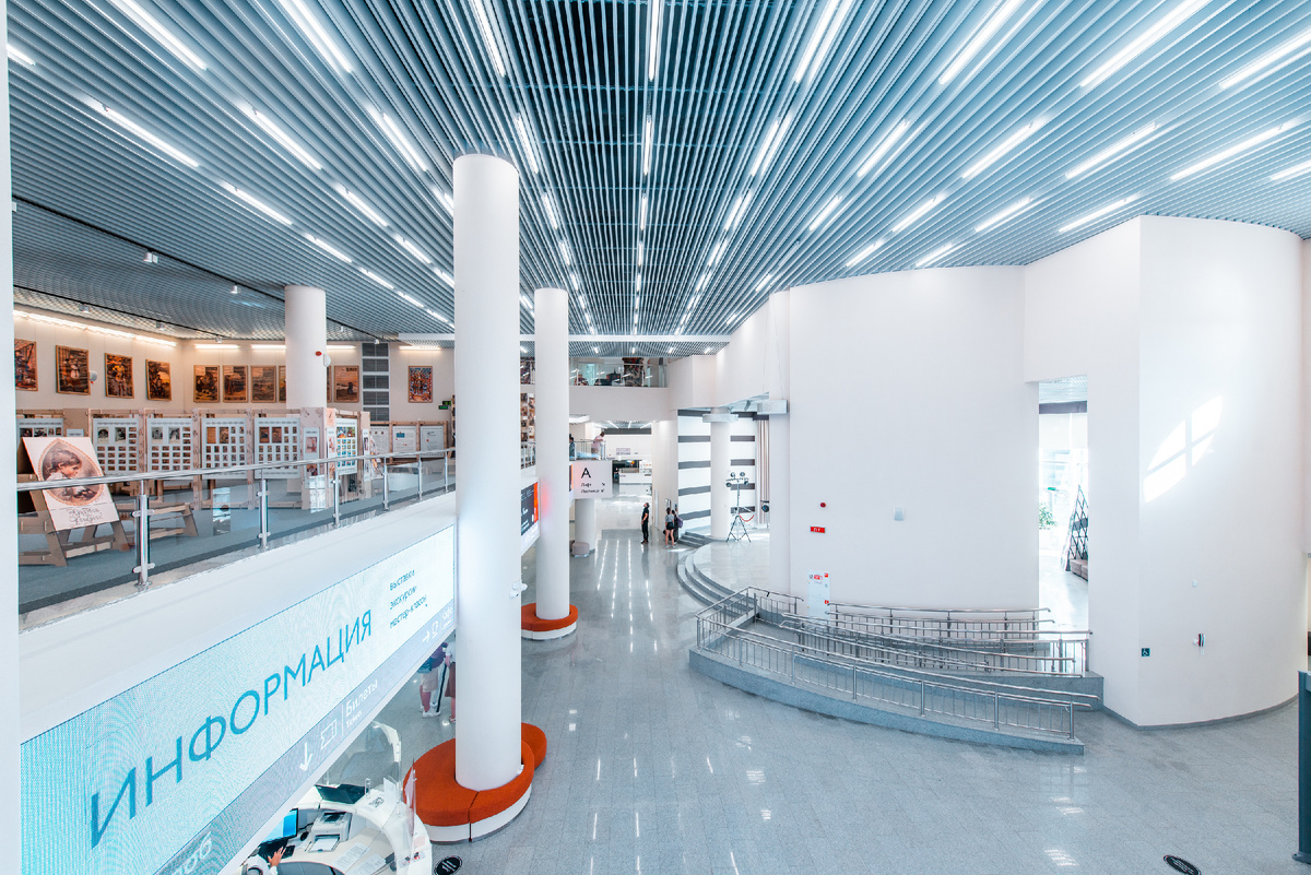 Мультимедийный центр на набережной Тюмени регулярно проводит бесплатные мероприятия: лекции, кинопоказы, гаражные распродажи, ярмарки. На втором этаже есть уютная зона с книгами.