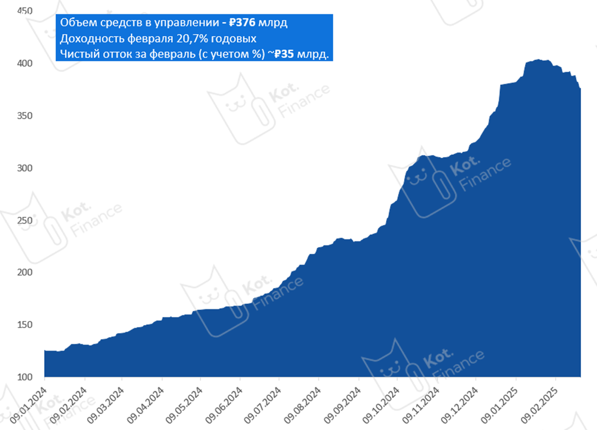 -- За февраль чистые активы фонда ВИМ-Ликвидности снизились на 6,7%, или на ₽26,5 млрд. Ранее мы развенчивали мифы фондов денежного рынка, и LQDT в частности: 🔹самый надежный 🔹самый ликвидный 🔹самый доходный (из равных по риску, разумеется) В LQDT куча денег и фонд на средства фонда может покупать паи фонда, что позволяет «выпускать» инвесторов, решивших продать. И это логично, ведь фонд и позиционировался, как временное аккумулирование средств: переждать фазу рынка, или отложить деньги перед крупной покупкой. Угрожает ли это держателям фонда? – Думаем, что нет, т.к. LQDT – чистая ликвидность Судя по динамике рынков – деньги растекаются всюду: - первичные размещения облигаций захлебываются в деньгах, все размещения со снижением ставок - Сбер фиксирует рост поступлений на вклады и снижает ставки по ипотеке - рынок акций кайфует от Трампа Кс