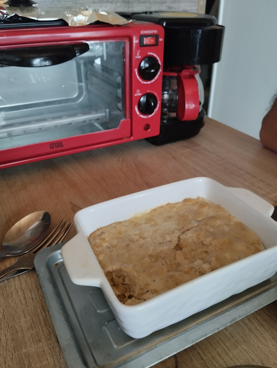 Привет, друзья! Сегодня с утра я приготовила запеканку в духовочке своей милой. Для запеканки я взяла половину банки белой фасоли, одну четверть фарша индейки, половину репчатой луковицы, яйцо и чайную ложка масла. Ну соль ещё, специи . Луковицу измельчила, фасоль также растолкла до состояния пюре, добавила фарш и остальные продукты. Смазала формочку маслом, выложила полученный фарш и запекала 20 минут при температуре 200 гр. К утренней овсянке запеканка бала отличным дополнением На верхнем этаже своей печки, в это же время, приготовила куриную грудку к обеду, что бы не расходовать энергию просто так. За 20 минут грудка в собственном соку отлично приготовилась. Хочу купить кинзы и орешков и приготовить с ними также курицу.🙂👍 У нас в деревне зима -снег идёт. А мы с ДМ в город сейчас поедем, побудем немного городскими жителями. Благо до нашей городской квартиры всего 7 км. Я в "Фитнес Хаус" схожу, он по делам. Да и с прорабом по ремонту нашей квартиры надо переговорить. Хороше