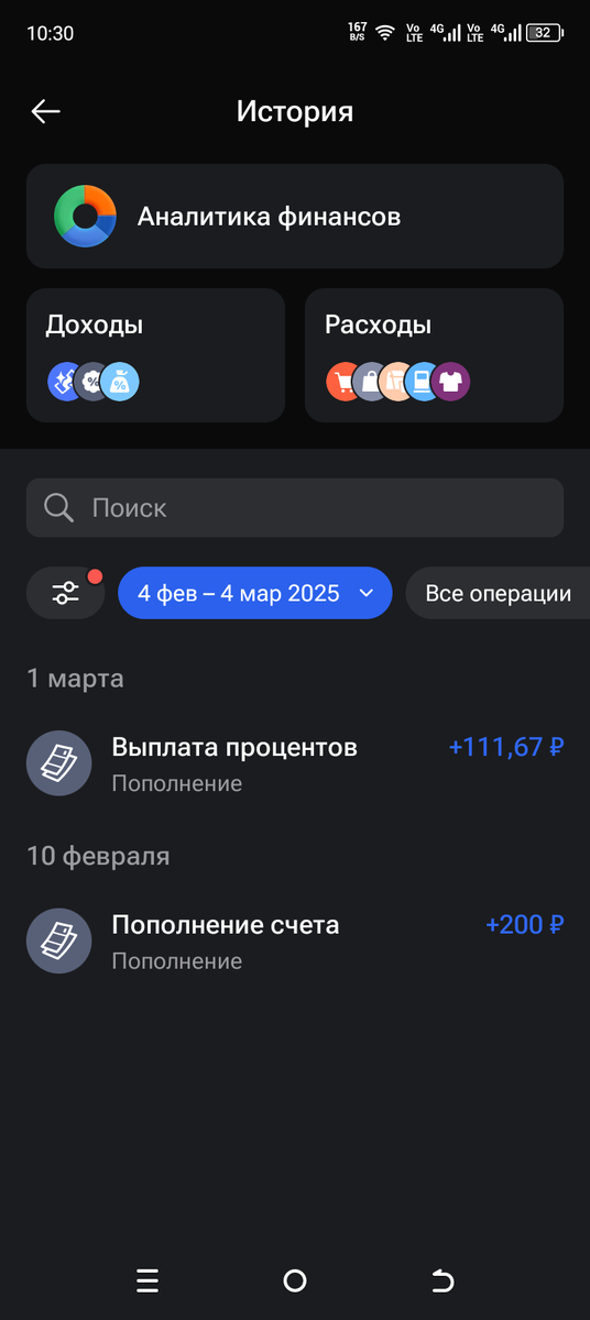 Приветствую тебя дорогой читатель! Вот и подошёл к нам первый весенний месяц, а значит февраль месяц оказался позади. И теперь можем подвести итоги второго месяца этого года. Вклад, открытый в марте 2024 года на сумму 101000р, был закрыт и в свой последний месяц принес 1609,24р. За всё время вклад принес 18196,47р. Вместо старого открыт новый вклад, в МТС банке на сумму 119196,47р на пол года с доходностью 22,01% годовых. Накопительный счёт открытый в Газпромбанке под 18% годовых принес 111,67р. Накопительный счёт и вклад Я использую как финансовую подушку безопасности. На брокерском счёте произошли следующие изменения: 1. Портфель наконец позеленел и вырос. 2.Пополнен брокерский счёт на 300р. 3.Получены купоны по ОФЗ-ПД 26240 в размере 69,8р. 4. Произведена покупка акции Роснефть. Ну и по традиции всё сведу в таблицу Общая доходность составила 1790,71р. Что выше чем в предыдущий месяц. А общий капитал составляет 153662,84р. Медленно, но верно идём к цели. Большое спасибо, что