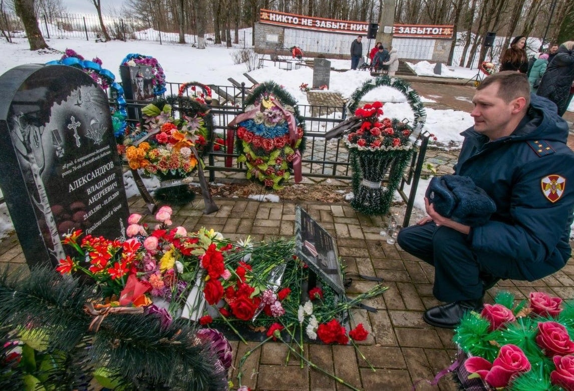Cотрудники межрайонного отдела вневедомственной охраны по Кингисеппскому району Ленинградской области на Братском захоронении в Ивангороде приняли участие в траурном митинге, посвященном памяти земляка — гвардии рядового Владимира Александрова.