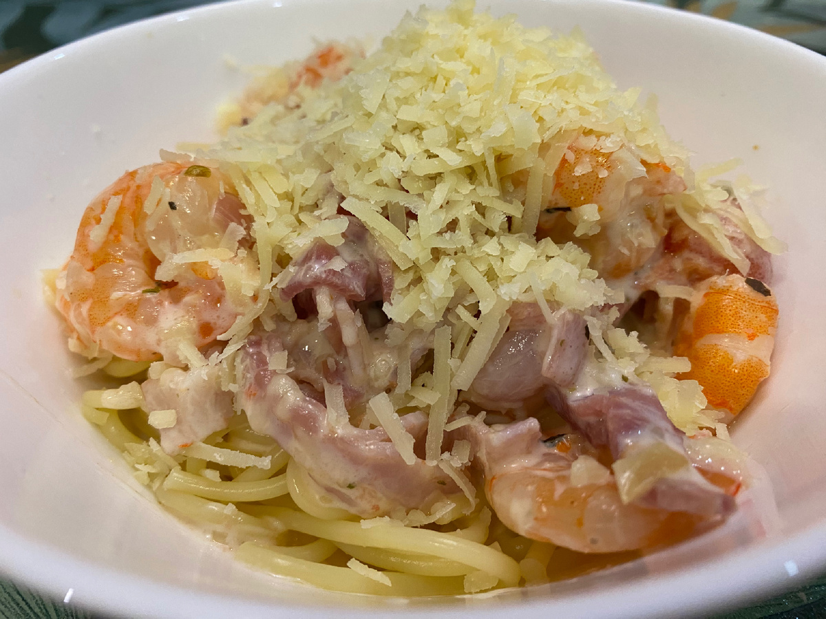Рецепт пасты с беконом и креветками (пошаговый)