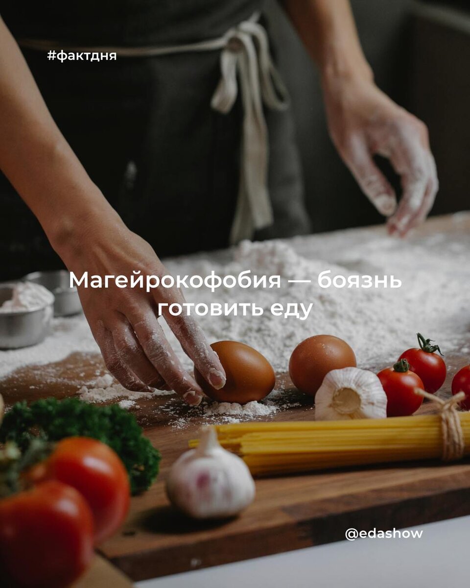 Магейрокофобия — это страх перед приготовлением пищи. Люди с этой фобией могут испытывать тревогу, стресс или избегать готовки из-за боязни испортить блюдо, получить травму на кухне или быть осужденными за результат. Знали о такой фобии? 🥘 Если вам понравилась наша статья, не забудьте поставить лайк👍Подписывайтесь на канал Еда.Шоу в Дзене — у нас тут вкусно и полезно! Наш сайт и социальные сети: