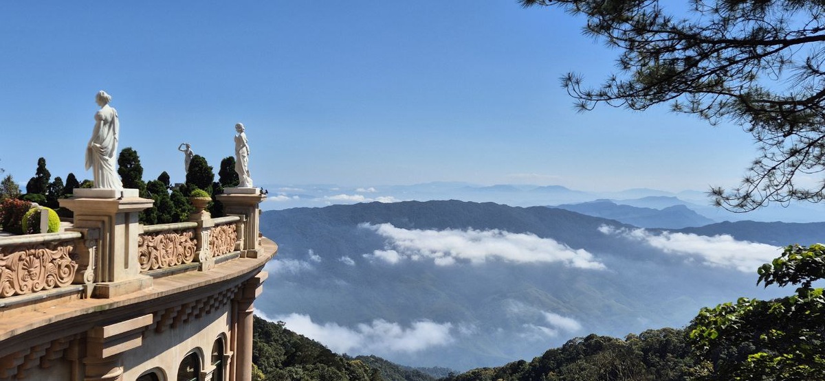 Ba Na Hills — одно из самых известных мест во Вьетнаме. Оно выглядит, как картинка из сказки: замки, пагоды, мост «Руки Бога» и самая длинная канатная дорога в мире. Но есть нюанс — здесь никто не живёт. Это туристический объект, и от этого у него нет той самой «души», которую чувствуют путешественники в аутентичных местах. Но знаете что? Это всё равно потрясающе красиво. Путешествие в Ba Na Hills начинается с подъёма по самой длинной в мире канатной дороге (5 км!). И это уже само по себе впечатляюще. Ты сидишь в кабинке, которая медленно скользит вверх, а под тобой джунгли, ущелья, водопады и облака, плывущие прямо у ног. Это не просто дорога — это целая картина, нарисованная природой, от которой невозможено отвести взгляд. К парку ведут четыре канатные дороги и с каждой из них открывается потрясающий вид. Одна из канаток поднимает вас к самому популярному объекту парка — мост, который держат гигантские ладони. Фотографии совершенно не передают того ощущения, которое возникает, когда
