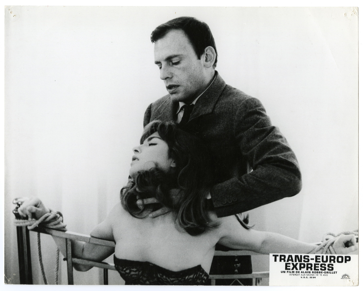 Ален Роб-Грийе в фильме "Трансъевропейский экспресс" превращает обычную поездку в Антверпен в аттракцион иллюзий, абсурда и жанрового хулиганства. Писатель (его кстати играет сам Роб-Грийе), его ассистентка (она же жена, а значит, спорить с ней себе дороже) и продюсер в дороге выдумывают сценарий. Их вдохновляет пассажир Элиас (Жан-Луи Трентиньян), который мельком заглядывает в купе, подозрительно шныряет по вагонам и вообще выглядит так, будто у него полно тёмных делишек. В их воображении он тут же превращается в контрабандиста, везущего наркотики в Бельгию, и понеслось – кино внутри кино, история внутри истории. Как и положено экспериментальному кино 60-х, сюжет вертится волчком: сцены тут же меняются, редактируются, отменяются. Продюсер придирается, ассистентка закатывает глаза: "Но это абсурд!" - "Ну, тогда вырежем". Сам фильм весело иронизирует над шпионскими триллерами вроде "Маньчжурского кандидата" или "Ориент-экспресса", но не в духе пародии, а скорее как злая насмешка над все