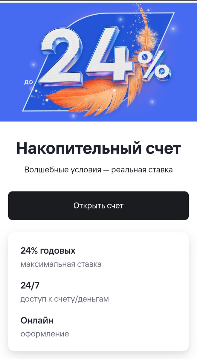 Обзор накопительных продуктов В Газпромбанке можно открыть накопительный счёт с промо-ставкой 24% на минимальный остаток. Приветственная надбавка даётся новичкам и действует 2 календарных месяца на сумму до 1.5 млн ₽. Новичок = 90 дней без НС и Вкладов либо с остатками не более 100₽ Можно использовать для накопительного паравозика и получать бесконечные Промо-ставки 23-24% (подробнее писал тут Когда открывать / закрывать ? ✔️Открывать и пополнять НС следует в последний день месяца (т.к остаток как правило фиксируется в полночь 1 числа) ✔️Выводить деньги можно в последний день месяца, но закрывать лучше 1 числа, после начисления % Пример: 1️⃣Открыли счёт 31.03 и пополнили на 100.000₽ 2️⃣С 01.04 начался отчётный период = 2 календ. месяца 3️⃣01.05 начислились % за месяц – 2000₽, их можно выводить, иначе будут болтаться мёртвым грузом ещё месяц. 4️⃣31.05 выводим 100.000₽ с НС, а 01.06 начисляться % за 2-й месяц – 2000₽. 5️⃣После этого закрываем счёт и запускаем период охлаждени