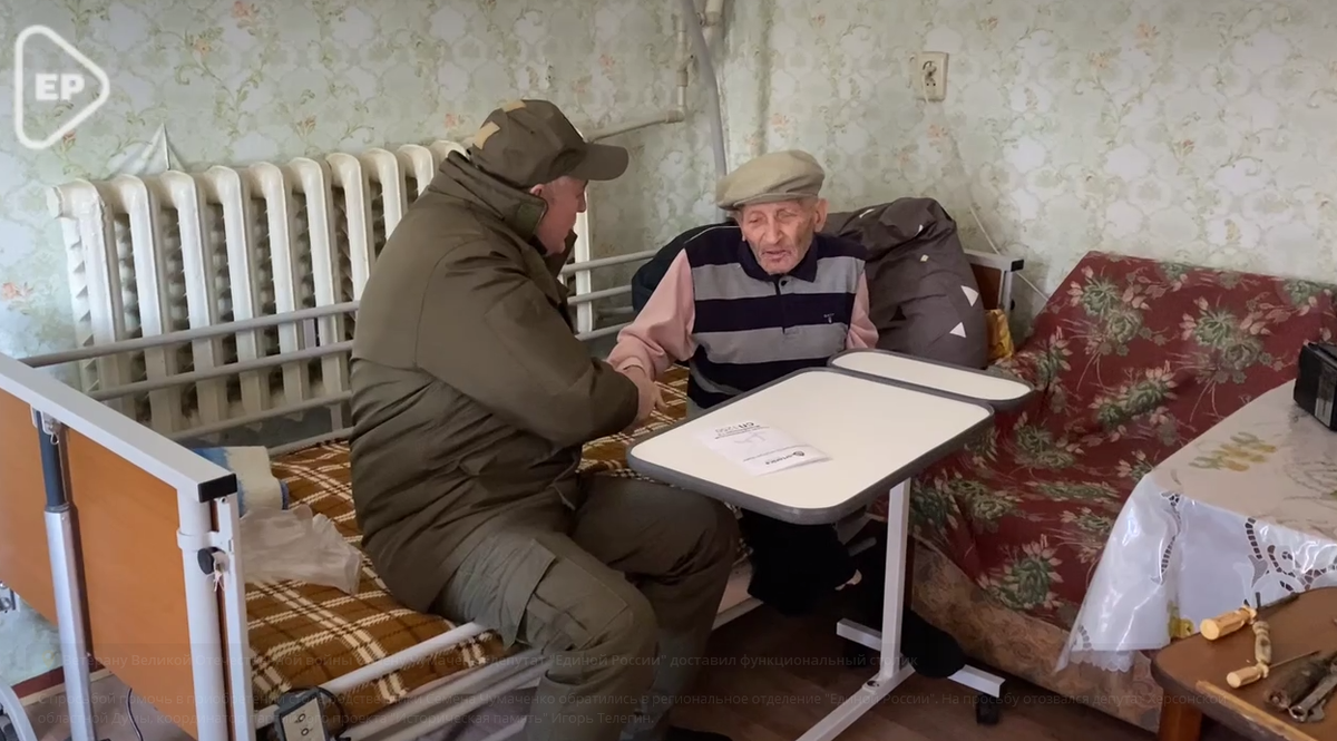 Представители партии «Единая Россия» передала 98-летнему жителю Геническа — участнику Берлинской операции необходимый ему функциональный столик. Об этом сообщили в пресс-службе регионального отделения партии. «С просьбой помочь в приобретении приспособления родственники Семена Чумаченко обратились в региональное отделение «Единой России». Старый столик у ветерана пришел в негодность – колесики не ездят. На просьбу отозвался депутат Херсонской областной Думы, координатор партпроекта «Историческая память» Игорь Телегин. Столик, который необходим ветерану передал в готовом к использованию виде», — говорится в сообщении. Семен Чумаченко родился в 1926 году в селе Макаровка Джанкойского района. Был призван в Красную армию в 1944 году. Сражался в частях 1-ого Белорусского фронта как сапер-разведчик. Он участвовал в освобождении Польши, является кавалером Ордена Отечественной войны и Красной Звезды. Волонтеры «Единой России» и депутаты регулярно навещают уважаемого жителя Геническа, стараются