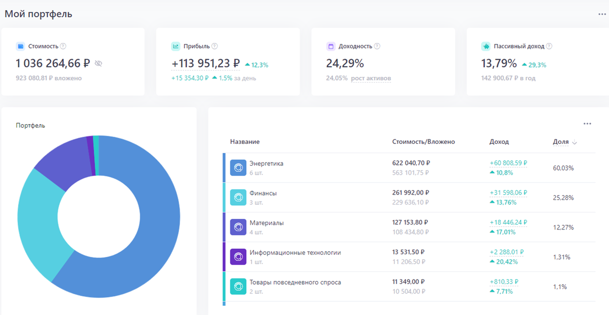 - Диверсификация: Вложил в 4 компании из разных секторов.