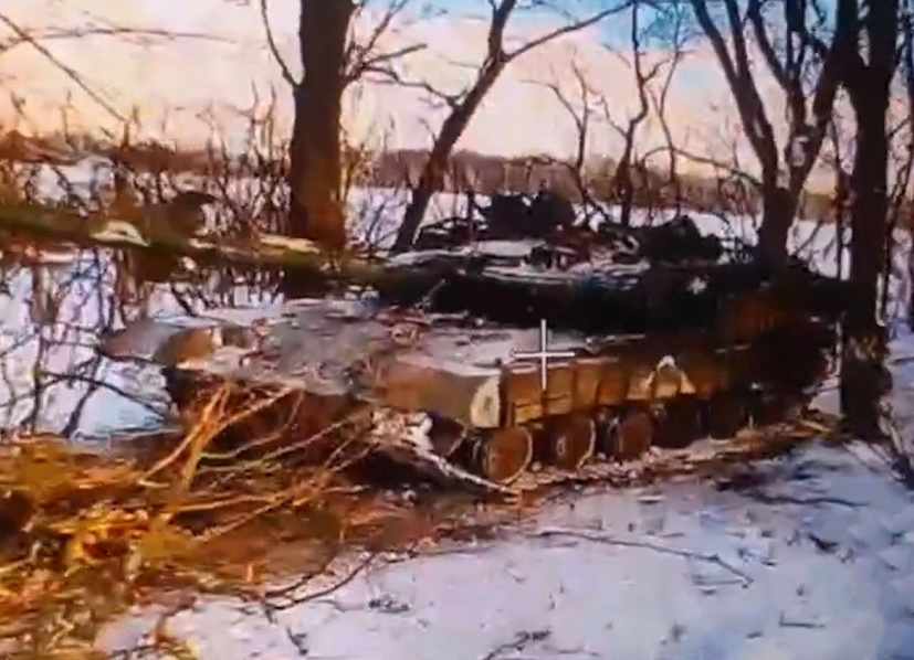 При воздушном наблюдении на линии фронта бойцы спецназа Росгвардии обнаружили замаскированный в заснеженной лесопосадке танк ВСУ.