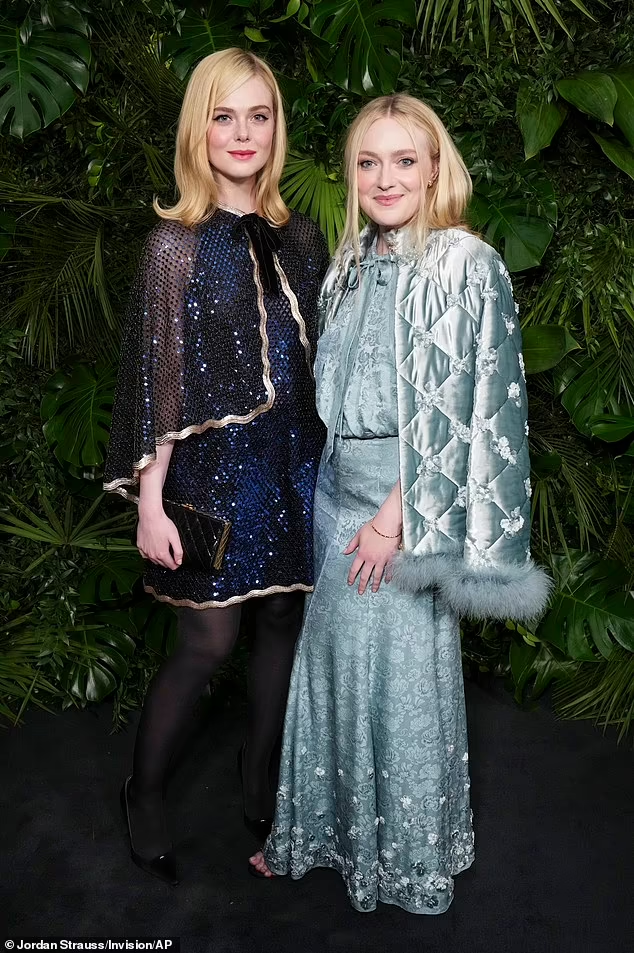 Эль Фаннинг излучает гламур, присоединившись к сестре Дакоте на звёздном ужине Chanel перед церемонией вручения премии «Оскар»